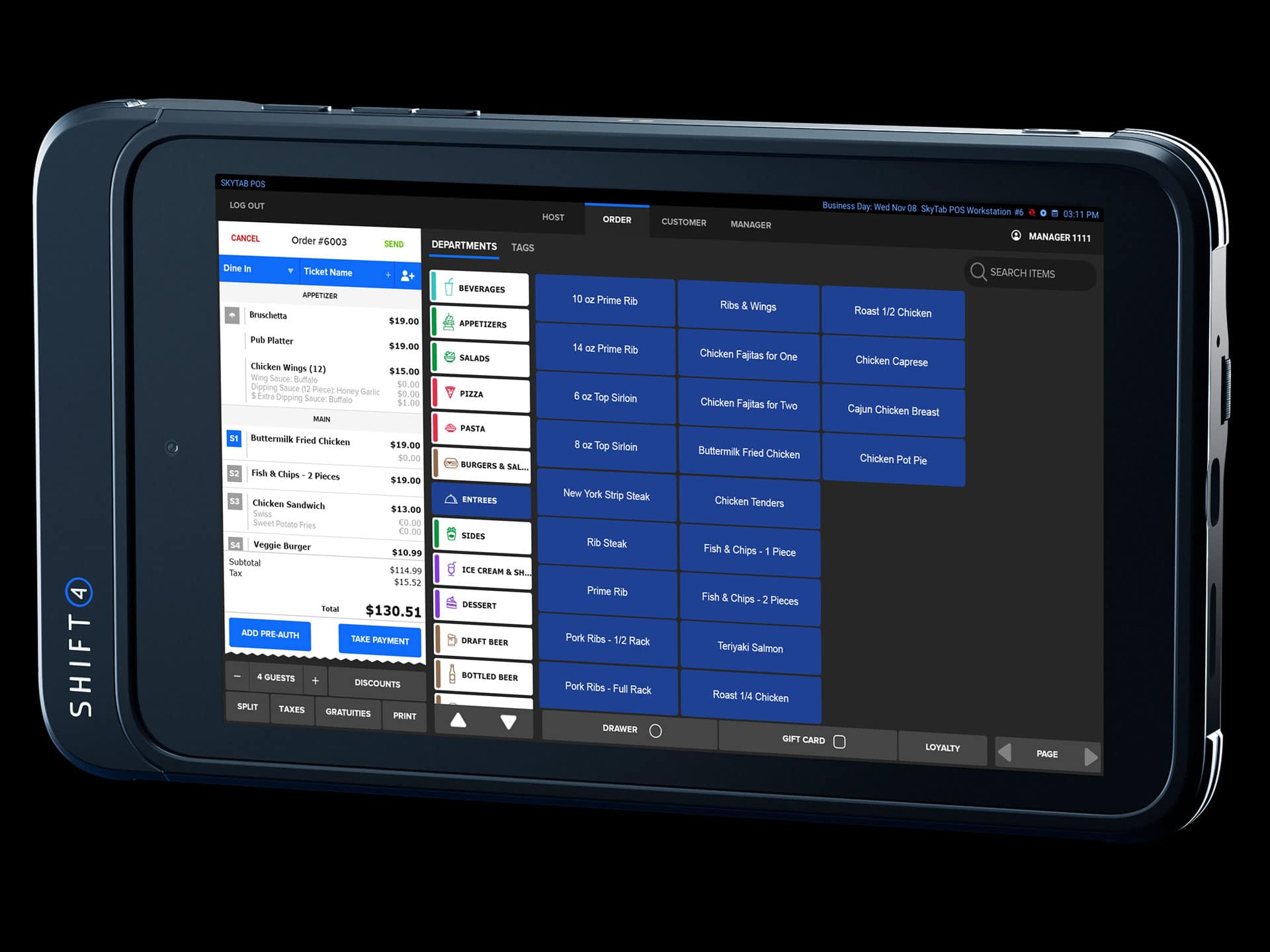 A restaurant-grade handheld that connects in real time to your core POS system.